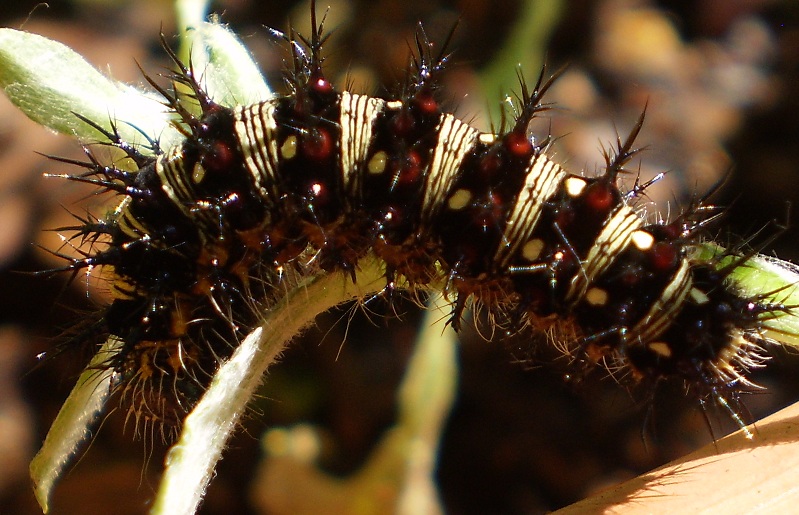 Went and found a nifty caterpillar today though that i think is some sort of butterfly. He was munching on a weed. Better than my plants though! I wanna say its Family Nymphalidae, Subfamily: Nymphalinae